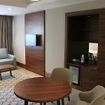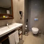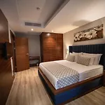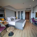 The hotel has 136 rooms, comprising a balcony. A TV with satellite channels, along with a minibar fridge, are offered. An electric kettle and glassware are available upon request. Bathrooms with a separate toilet and a shower, also include a hairdryer and bath sheets. Guests can enjoy views of the city from the Seven Kusadasi.